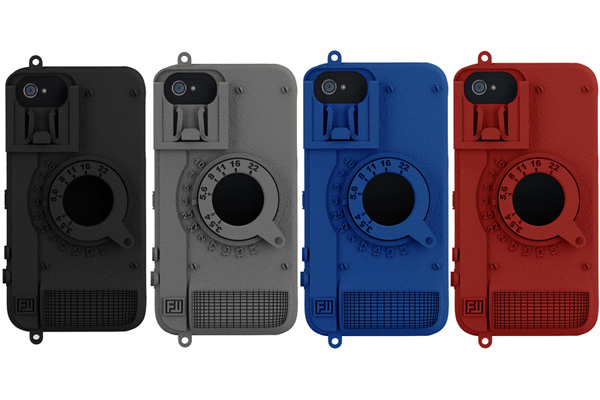 オールドコンパクトカメラをモチーフにしたiPhone 4S/4用ケース。手動のピント合わせダイヤルを実際に動かすことができるほか、iPhone 4S/4本体のカメラ部に合わせた可動式レンズカバーも用意されている。カラーバリエーションはグラファイトブラック/グレイ/ブルー/レッドの4色。