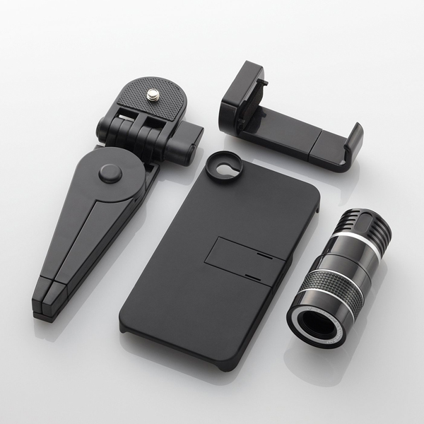約8倍の光学ズーム撮影が行える望遠レンズキット。デジタルズームのように画像が荒くならず、美しいズーム写真が撮影できる。専用ケースはiPhoneを横向きに立てることができるスタンド機能も用意。レンズの汚れを防止するレンズキャップのほか、小型の三脚が付属している。