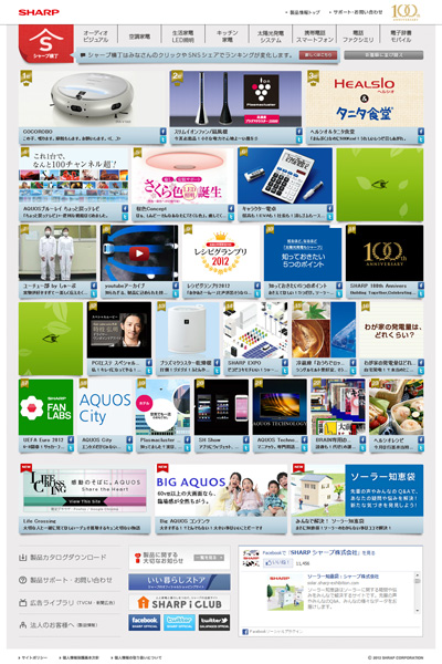 シャープ株式会社は、同社コンシューマー向け製品などを紹介する新たなポータルサイト「シャープ横丁」(http://www.sharp-yokocho.jp)をオープンした。「横丁」の名称通り、暖簾や看板を眺めるように各コンテンツに“ぶらりと立ち寄れる”Webサイト。同社では「お客様とともに創っていくサイトデザイン」を掲げており、アクセス回数やfacebookでの「いいね!」、Twitterでのつぶやきの数によって、コンテンツの表示順などが変動する仕様となっている。