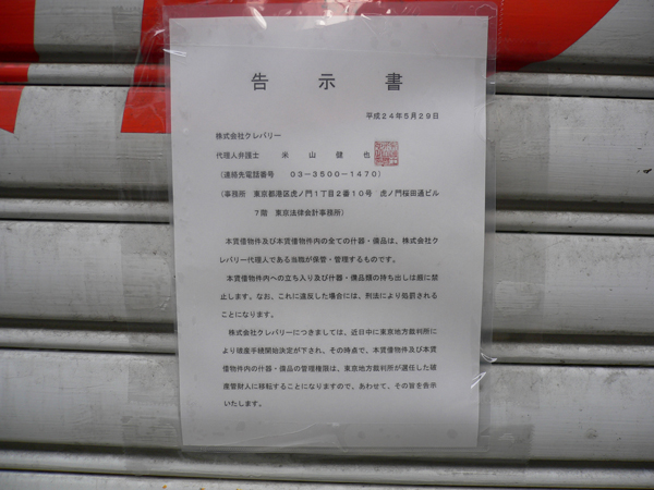 同社は1988年8月に創業。帝国データバンクによると2008年の無差別殺傷事件や東日本大震災の影響で、来店客数が減少。2012年2月末には1号店および2号店を閉鎖するなどして固定費の圧縮に取り組んだものの業績は好転せず、自己破産となった。負債総額は約3億3200万円。