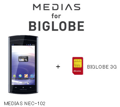 NECビッグローブ株式会社(BIGLOBE)は、3G回線とデータ通信専用スマートフォンをセットにした「MEDIAS for BIGLOBE」を6月1日に提供開始すると発表した。