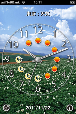 同アプリではアナログ時計の文字盤に合わせて1時間毎の天気/気温/降水量/風向/風速/湿度や週間予報などの情報を閲覧できる。また、壁紙や時計は好みのものを設定可能。初回ダウンロードは無料で、30日間のお試し利用ができる。無料期間終了後は85円(60日間)の有料登録が必要だ。