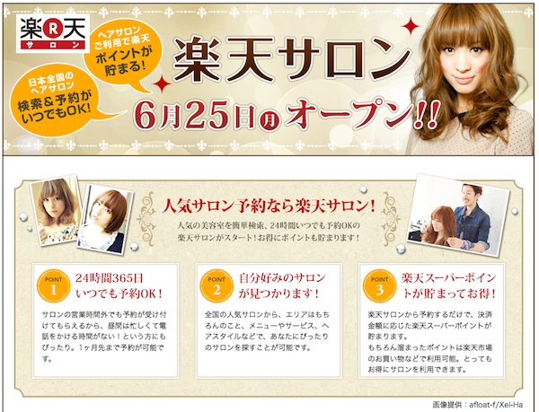 楽天株式会社は、美容室を検索・予約できるサービス「楽天サロン」を2012年6月25日(月)より開始する。