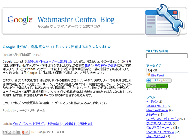 Google、Pandaアップデートを日本と韓国で実施