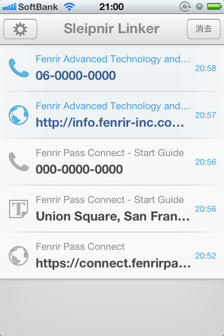 同アプリは、SleipnirからFenrir Passにログインすることでさまざまな連携を可能にするもの。Sleipnirで調べた電話番号にiPhoneからワンクリックで電話できるほか、掲載された住所をiPhone上のマップで見ることがもきる。電話番号を送ってiPhoneの連絡先に追加するといった使い方も可能だ。iPhoneに送った情報は履歴として残るので、あとからもう一度開くことができる。