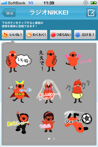 文字を入力しなくても画面上でスタンプを選んで投稿することで番組の感想をより直感的に共有できる「ピーチクスタンプ(ラジオver.)」機能も搭載。TwitterやFacebookとの連携も可能で、ソーシャルメディア上で現在聴いているラジオ番組について発信できる。さらに、TOKYO FM制作のラジオ番組「クロノス」のピーチク特設チャンネルも同アプリに登場。iPhoneを使って特設チャンネルでの「おしゃべり」に参加できるようになった。