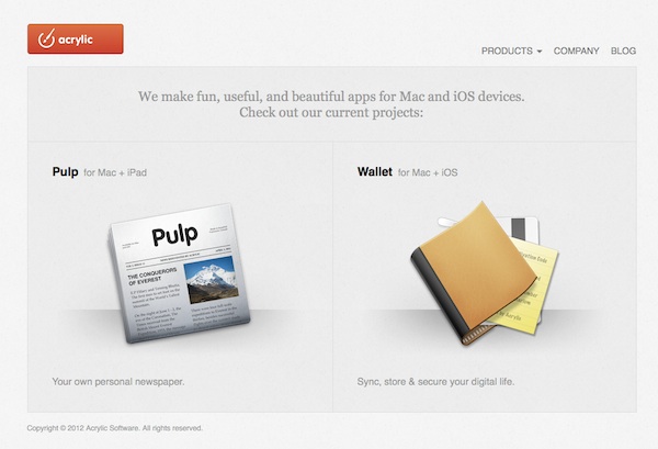 Acrylic Software社はこれまでに、ニュース記事などを雑誌や新聞のように表示させるWebアプリケーション「Pulp」やアカウント情報などを管理できる「Wallet」を公開、特にデザインにこだわったアプリ開発を行っているのが特徴だ。また、両アプリの提供は引き続きApp Storeにて行うという。新しい開発やFacebook参加後の活動についての詳細はまだ発表されていないが、今後はFacebookのある米サンフランシスコで活動するとしている。