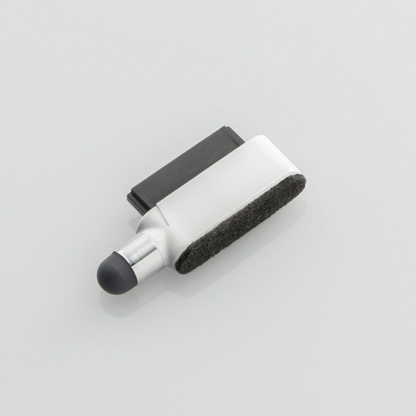 本製品は、本体にプラスチック、ペン先にシリコンゴムを用いたタッチペンだ。本体サイズは約7(幅)×16(高さ)×36(奥行)mm、ペン先は約6mm径で、重量は約4g。Dockコネクタキャップの反対側には、液晶画面の汚れを拭き取ることができるクリーナーも実装されている。