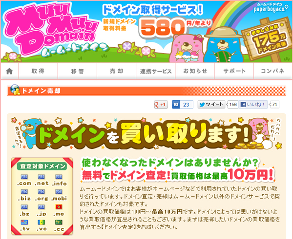 株式会社paperboy&co.は、同社が運営するドメイン取得サービス「ムームードメイン」において不要ドメインの無料価格査定および買い取りサービスを開始した。