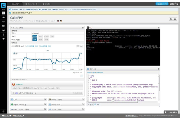 同プラットフォームはWebサービスの開発に必要なWebサーバやデータベースサーバ、Ruby、PHP、Pythonなどの言語、Ruby on Rails、CakePHPなどのフレームワーク、WordPressなどのソフトウェアが用意されている開発・運用プラットフォーム。コントロールパネルから直感的に操作することが可能で、サーバやネットワークの専門知識がなくてもアプリケーションの開発・運用が行える。また、複数人で作業できる「コラボレーション機能」を備えている。