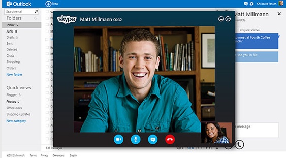 また、オンラインストレージ「SkyDrive」との連携を行いファイル送信ではなくオンライン上での共有を促すものとなっているほか、Word/Excel/PowerPointといったファイルをOutlook.comから移動することなく、オンラインで編集可能だ。さらに、各SNSと連絡先・コンタクトを統合することで、Outlook.com内からチャットも行える。