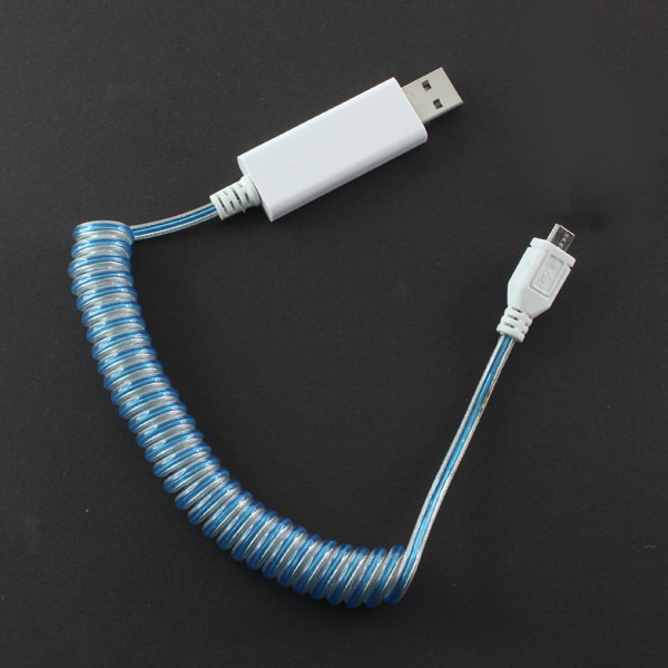 本製品の最大の特徴は、ケーブル内部にLEDランプが内蔵されており、充電状況を視覚的に確認できることだ。LEDの光の流れの速度は状況に応じて変化。満充電に近づくほどゆっくりになり、充電が完了すると光が消える仕様となっている。ストレートタイプは全長が80cm/重量が約25gで、カールコードタイプは全長が30〜110cm/重量が約35g。