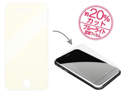同製品はiPhone4/4Sの画面から出るブルーライトを約20%カットする画面シート。サイズは110(高さ)×55(幅)mm。