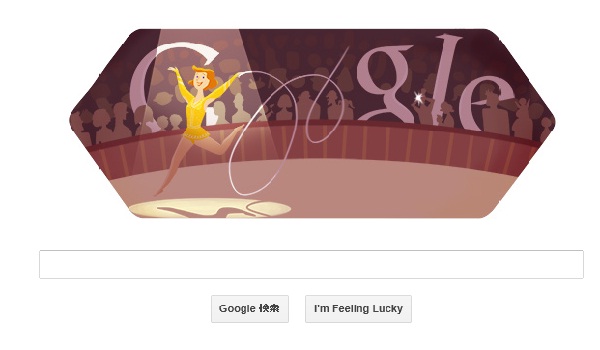 Googleは、2012年8月11日のホリデーロゴを新体操のデザインに変更した。新体操はロンドンオリンピックの一種目で、日本時間で8月9~12日の間に行われる。(関連記事「Googleホリデーロゴで振り返るロンドンオリンピック2012(前半戦)/(後半戦)」)。