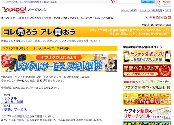 ヤフオクではじめよう! レンタルサービス、スキル提供