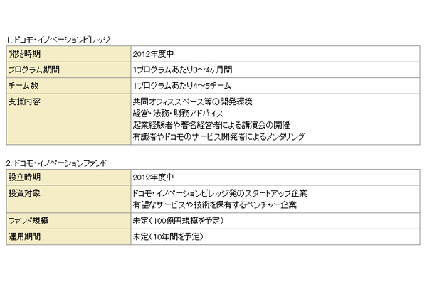 株式会社エヌ・ティ・ティ・ドコモ(NTTドコモ)は、ベンチャー企業との連携強化に向けた新たな取り組みとして、起業支援プログラム「ドコモ・イノベーションビレッジ」を開始し、ベンチャー企業への出資を行うコーポレートベンチャーファンド「ドコモ・イノベーションファンド」を設立すると発表した。