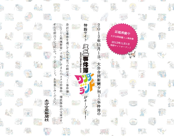 大分合同新聞は、同紙の夕刊社会面で掲載している「ミニ事件簿」の特設サイト「ミニ事件簿ワンダーランド」を2012年11月1日(木)にリリースすると発表した。