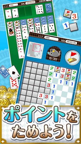同アプリは定番ゲーム「ソリティア(1人用トランプゲーム)」と「マインスイーパー(1人用パズルゲーム)」で遊びながら猫をコレクションしていくゲーム。貯めたポイントで猫じゃらしやボール、またたびなどのアイテムを獲得し、猫を集める。猫の種類は160種類以上で、猫が集まる部屋は全部で5種類。すべての猫を集めると「トップにゃんコレクター」の称号が得られる。