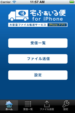 同アプリは大容量ファイル送受信サービス「宅ふぁいる便」をiPhone上で利用するためのアプリ。受信したファイルはアプリ上のビューワーで確認することが可能で、カメラロールやiTunesへの保存も可能だ。