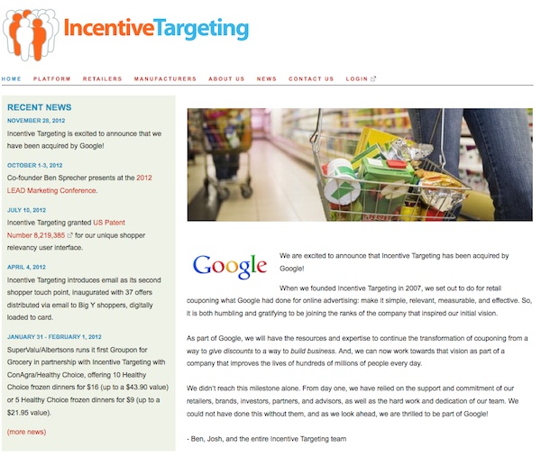 Googleがクーポン発行サービスのIncentive Targetingを買収