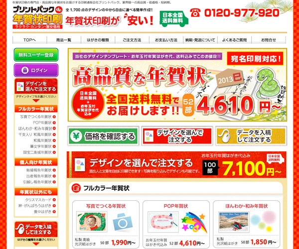 プリントパック、恒例のWebサイト「プリントパックde年賀状印刷」を開始