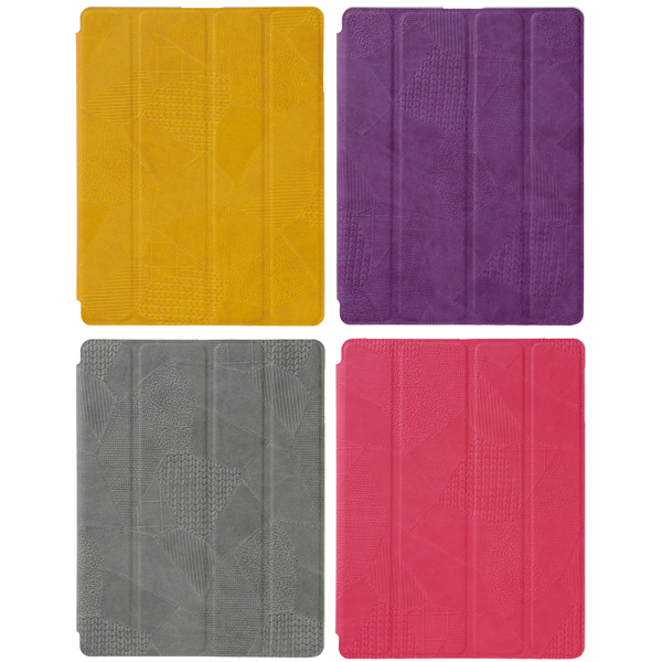 本製品は、iPad Retinaディスプレイモデル(第4世代)/iPad(第3世代)/iPad 2で使用できる約400gの保護ケース。アウター素材にはイタリアンPUレザー、インナー素材にはマイクロファイバーが用いられている。従来製品としてシックな雰囲気のカーフスキンシリーズ6色が発売されているが、今回登場したモデルは複数の素材を繋ぎ合わせたかのようなモンタージュ柄で、人目を引く個性的な色も特徴。開閉部はマグネット式で、フリップの開閉による起動/スリープの自動制御にも対応している。