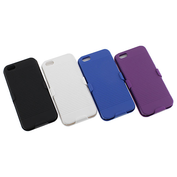 本製品は、背面カバーとホルダー部に分かれて構成されており、背面カバーのみでも使用できるモデルだ。ホルダー部の裏側にはクリップが付いており、ベルトやポケットなどに挟んで持ち運べる。このクリップは180度回転に対応し、縦/横いずれの向きに変えることも可能。さらに、クリップの内側に用意された“つっぱり棒”を引っ掛けることによって、iPhone 5を立てかけるスタンドとしての役割も果たす。