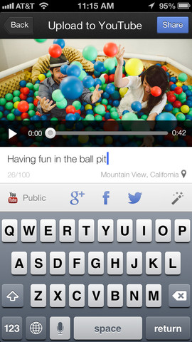 同アプリは、開くだけですぐに録画を開始でき、撮影し終えた動画にキャプションを添え、ネットワークを選ぶだけで即座にシェアすることが可能。YouTubeだけでなくTwitter、Facebook、Google+へのシェアも行える。また、アプリを最小化してもバックグラウンドでアップロードを継続。公開する動画は、自分のみ閲覧できる「Private」、リンクを送った人のみ閲覧できる「Unlisted」、全体公開の「Public」から選ぶことができる。