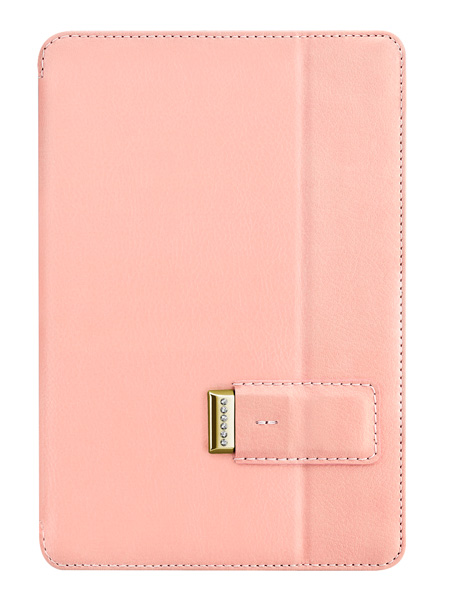 「Pelle」は、ポリウレタンレザー製のトップカバーと、ポリカーボネート製のシェルケースで構成されたモデル。開閉によるオートスリープ/復帰に対応するほか、スタンド機能も備えており、キーロックをスライドして角度調節を行うことができる。カラーバリエーションは、シャドーブラック/マンデーブルー/ホットレッド/ミントグリーン/ブロッサムピンクの5色で、このうちミントグリーン/ブロッサムピンクの2色は、キーロックにSWAROVSKIクリスタルを配した女性向けのデザイン。想定価格は各3980円となっている。