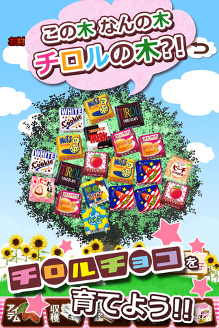 同アプリはチロルチョコをテーマにしたゲームアプリ。カカオ型のタネを「チロルの木」にまいてチロルチョコを育成し、「チロルチョコ図鑑」を完成させたり、「チロルくじ」を引いて「チロルチョコのひみつ情報」や壁紙を入手したりできる。