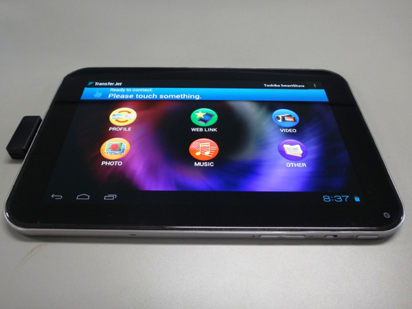 株式会社東芝は、近接無線技術「TransferJet」に対応するmicroUSBアダプタモジュール「TJM35420MU」を製品化することを発表した。Android搭載スマートフォン/タブレットに外付けし、Androidアプリをインストールすることで、「TransferJet」への対応が実現される。本モジュールは2013年3月に量産が開始され、スマートフォン/タブレットメーカーやPC周辺機器メーカー向けに販売される予定。