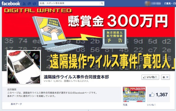 遠隔操作ウイルス事件合同捜査本部(facebookページ)