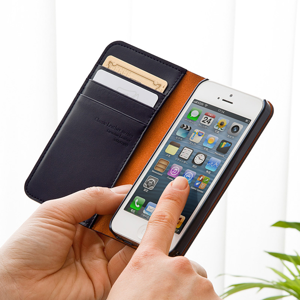 サンワ、カード収納ポケットつきiPhone5用本革ケース
