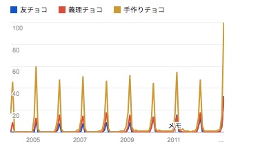 バレンタインのGoogle検索トレンド、「友チョコ」の人気上昇