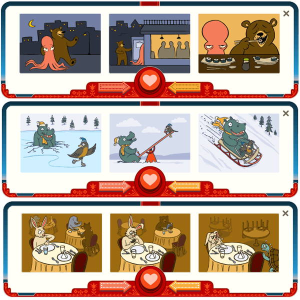 Googleは、2013年2月14日のホリデーロゴをアメリカのエンジニア、ジョージ・フェリス生誕154周年およびバレンタインデーを記念したデザインに変更した。
