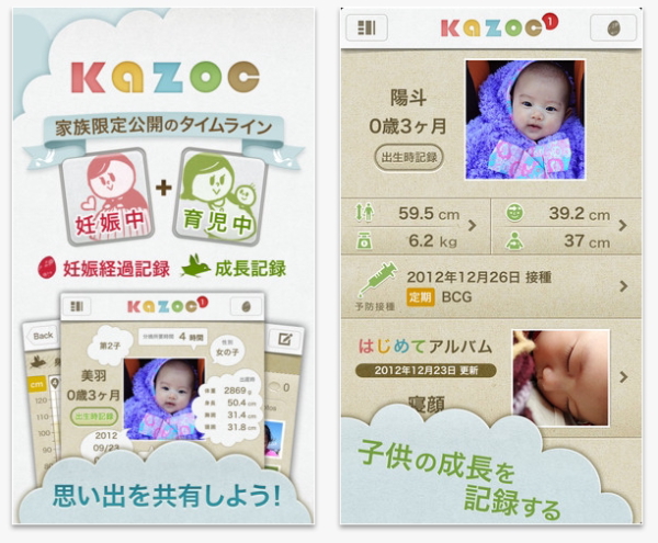 ヤフー株式会社は21日、子どもの写真や身長・体重などの記録を家族と共有できる、コミュニケーションサービス「kazoc」(カゾック)の提供開始を発表した。iPhoneアプリとして公開され、Androidアプリ版やブラウザ版は順次公開する予定。利用にはYahoo! JAPAN IDが必要となる。