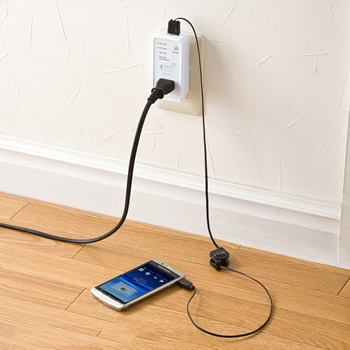 スマートフォンのアプリには、分単位で時間を設定し、設定した時間が経過すると自動的に電源をOFFできる「自動電源OFF機能」のほか「スケジュール機能」も搭載している。さらに、スマートプラグ本体左側の「消費電力ランプ」によって、何%の電力が消費されているかを確認できるなど、節電を意識した機能が多数搭載されている。