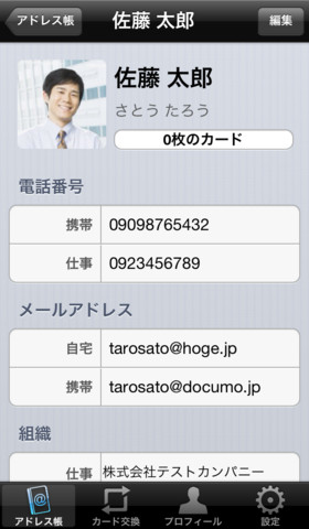 同アプリは自分の連絡先が入力されている「プロフィール・カード」をスマホ画面に表示して、フリックでカードを送り、相手から受け取ることもできるアプリ。タップひとつで大人数でも一斉にプロフィールを交換できる。カード作成はSNSのプロフィールを使うことで簡単に行える。また、タグで検索できるアドレス帳も搭載する。