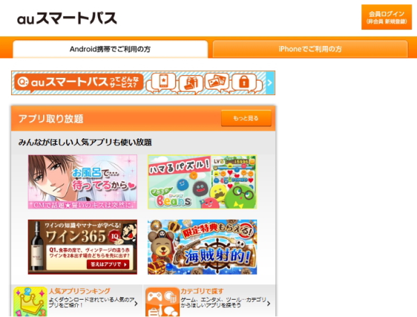 「auスマートパス」は2012年3月1日にサービス開始され、約1年後の2013年3月2日に500万を突破した。サービス内容は、アプリケーション取り放題、クーポン、ポイントサービス、50GBの写真・動画ストレージ、セキュリティーとサポートとなっている。料金は月額390円。