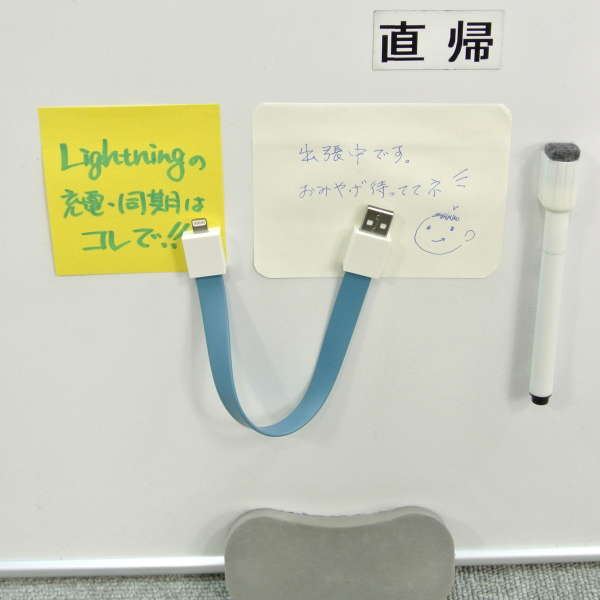 同製品は両コネクタにマグネットが内蔵されており、コネクタ同士をマグネットでつなげることによりリング状にすることができる。リング状にすることでバッグの持ち手につけたり、ブレスレットのように巻きつけて携帯することが可能だ。金属面にもつけることができるので、ホワイトボードや冷蔵庫にメモを貼り付ける際にも役立つ。長さは約200mm、重さは約30gとなっている。