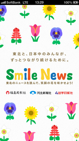 株式会社福島民報社と株式会社岩手日報社、株式会社河北新報社の3社が展開する復興支援プロジェクト「スマイルとうほくプロジェクト」は、iPhoneアプリ「Smile News」を提供開始した。iTunes App Storeから無料でダウンロードできる。