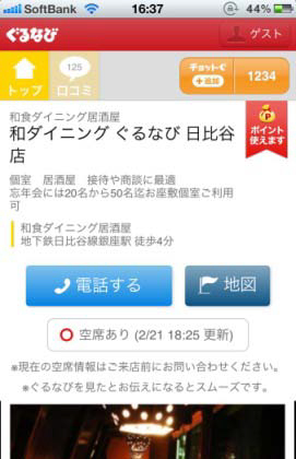 ぐるなび、飲食店の空席情報がリアルタイムでわかるサービス