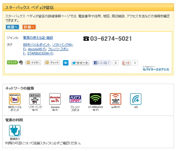 パソコンサイト/スマートフォンサイト「マピオン」では、全国主要スポット900万件が登録されたマピオン電話帳の中に、電源の使える店・施設を加え、各市区町村ごとに該当スポットの一覧表示も可能になった。電源の利用については、店舗側が公式に認めているかユーザーが使用実績を投稿したかの区別もつけている。ネットワークに関しては、有線LANの情報やソフトバンクWi-Fi、docomo Wi-Fi、auWi-Fi SPOT、livedoor wireless、FLET'S SPOT、BBモバイルポイントなど主要Wi-Fiスポットの情報を掲載している。