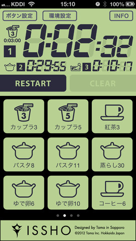 同アプリでは、終了時間を音声で知らせるだけでなく、残り時間も音声でお知らせ。カウントダウンタイマーとしても利用可能だ。パスタや卵のゆで時間、お風呂のお湯を貯める時間など、使用頻度の高い項目は登録することが可能だ。また、時間はテンキーによる入力が行えるほか、スキンやボタンのデザインカスタマイズ、フラッシュライト機能も備えている。