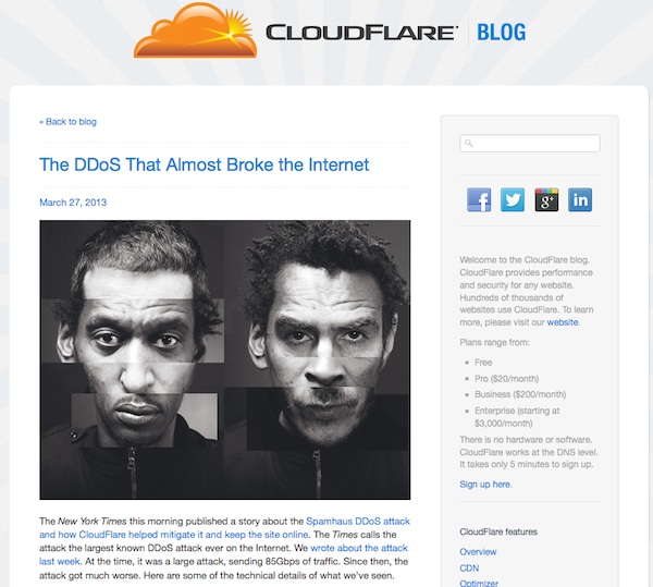 Cloudflareは以前にもこの大規模な攻撃に関する発表を行っていたが、The New York Timesが「スパム対策に取り組む団体「Spamhaus」に対するDDoS攻撃と、それを助けたCloudflare」という記事を公開し、その記事によって過去最大規模のサイバー攻撃が行われていたことが広く知られるようになった。