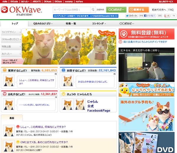 【4/1】「ししょー!おしえてほしいにょです!」OKWaveで猫の「にゃらん」が質問に回答