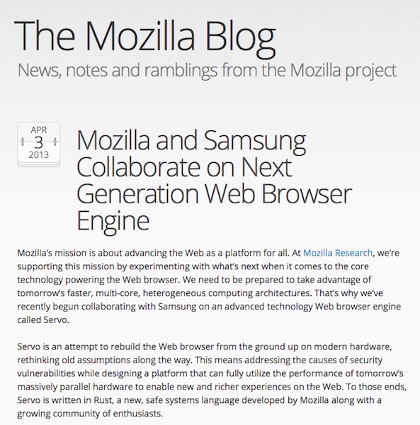 URL:https://blog.mozilla.org/blog/2013/04/03/mozilla-and-samsung-collaborate-on-next-generation-web-browser-engine/