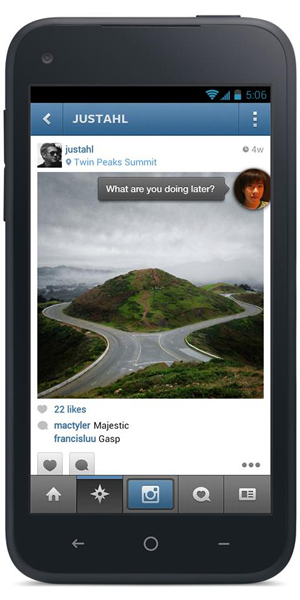 Facebook Homeをインストールすると、ロック中かアンロックした状態のホーム画面がFacebook専用の画面となり、Facebookでつながっている友人の投稿写真がまず現れる。直接いいね! やコメントすることができるし、Facebookメッセージの送受信も簡単だ。写真を軸にしたのは若者向けだし、メッセージング機能を全面に押し出すのも若者ウケを狙うものだと思う。このFacebook Homeが若者離れを止める切り札になるかどうかはまだわからないが、それでも意図するところはうまく表現されたアプリのようである。