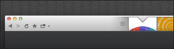 サムネイルのタブをもっとも美しくデザインするために、最初に考えたのはタブバーそのものを省くことでした。一般的なタブバーは、タブが少なくてもツールバーを占有しています。むだに枠だけがあって、なんだか野暮ったいと思っていたのです。そこでSleipnir for Macでは、金属調のツールバーをわずかにくぼませて、そこへタブを収めました。タブが少なければくぼんだ領域も最小限になり、残ったスペースには継ぎ目のないそのままのツールバーがすらり。タブが少ないときの余白を“余裕”として魅せるデザインなのです。