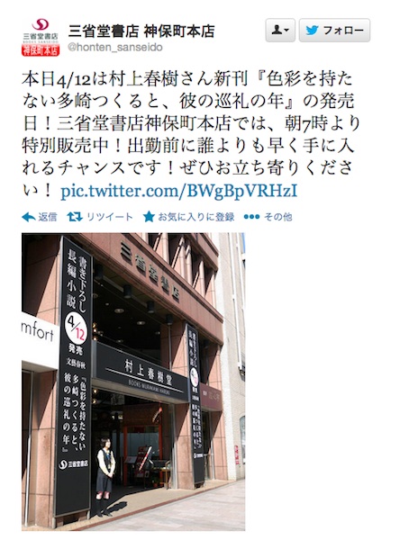 世界的に活躍中の作家・村上春樹氏の3年ぶりとなる新作『色彩を持たない多崎つくると、彼の巡礼の年』が発売となったことで、Twitterでも話題となっている。